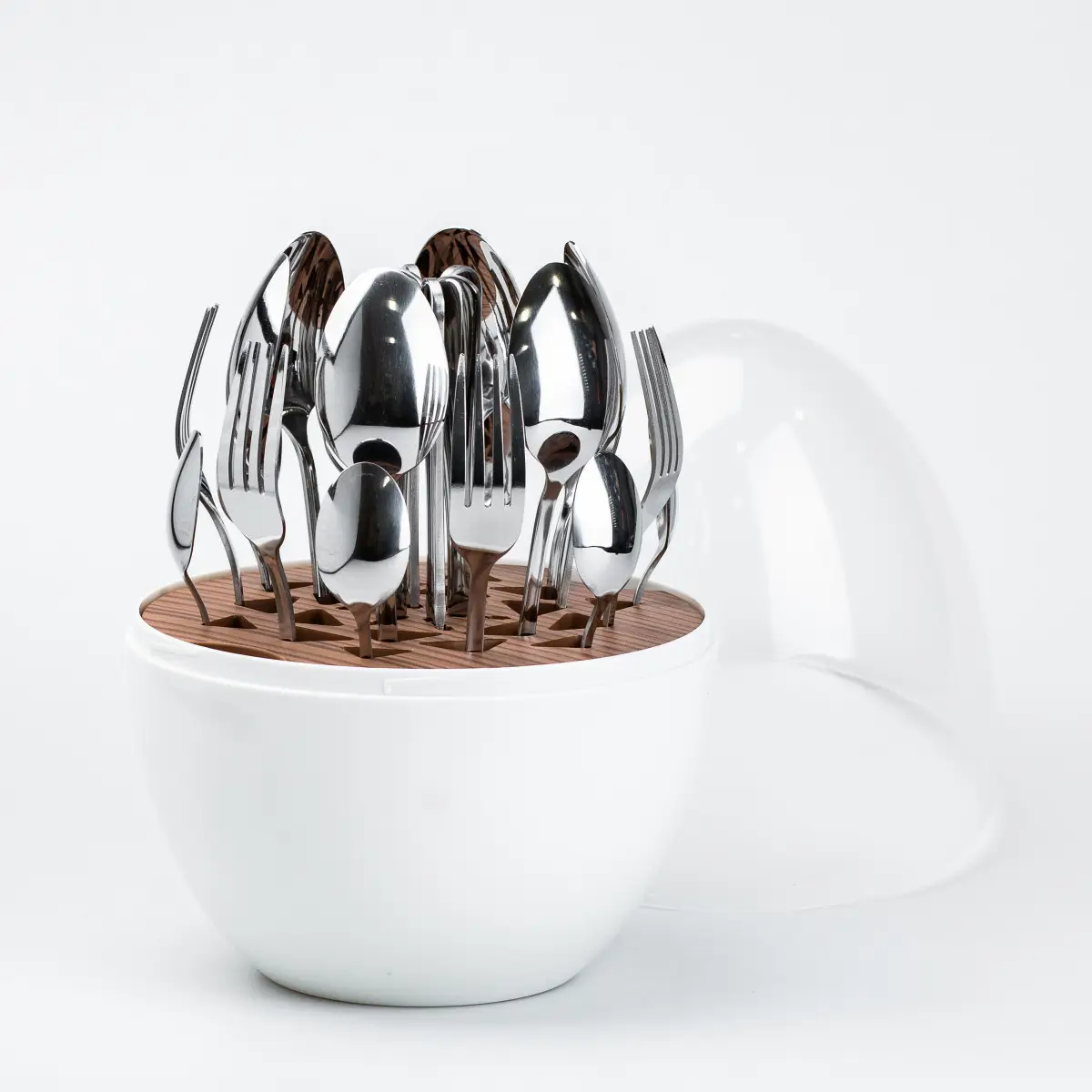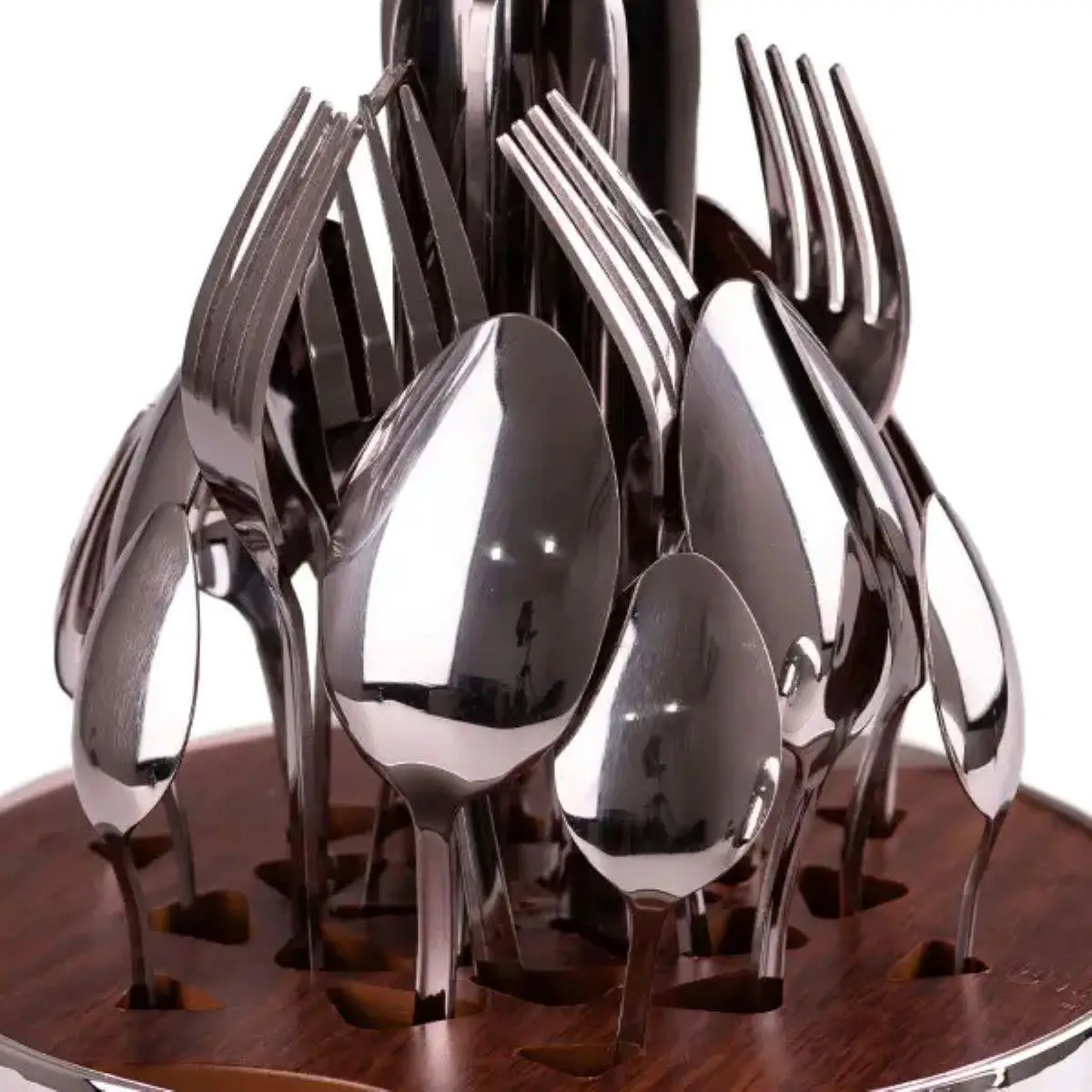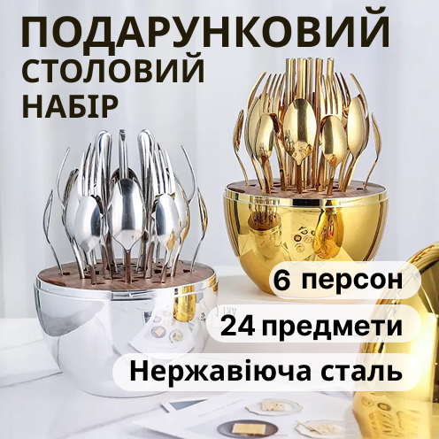 Набір столових приборів – незамінний атрибут на будь-якій кухні. Цей набір посуду складається з 24 предметів для сервірування столу на 6 персон.Нержавіюча сталь